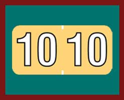 Colwell/Patterson laminated end tab year label. 500/roll. Size: 3/4" H x 1 1/2" W. 2010 labels are cream with white numbers.